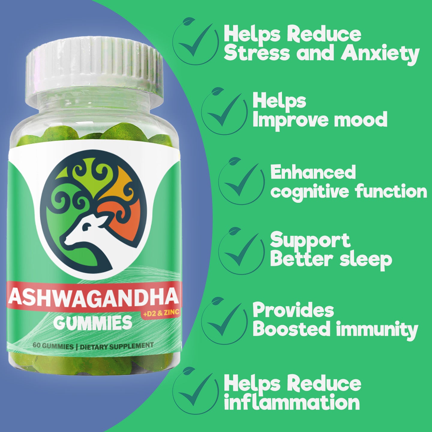 These Ashwagandha with D2 and Zinc Gummies are a game-changing solution to help you combat everyday stress and anxiety.